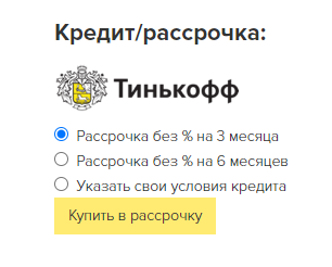 Воспользуйтесь беспроцентной рассрочкой на 3 или 6 месяцев от банка Тинькофф.